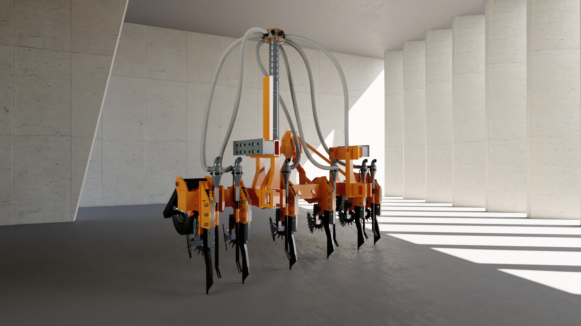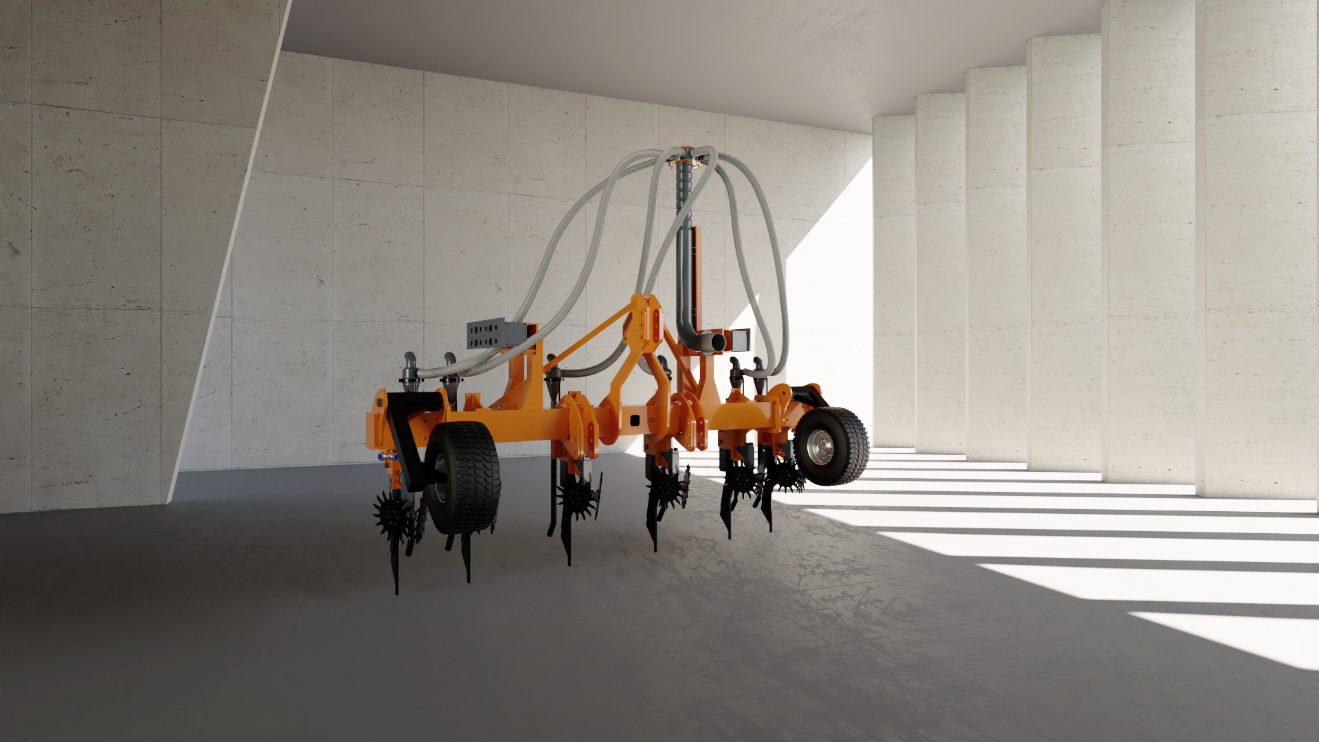 Visualización 3d de maquinaria agrícola, con diseño y creación 3d del entorno.